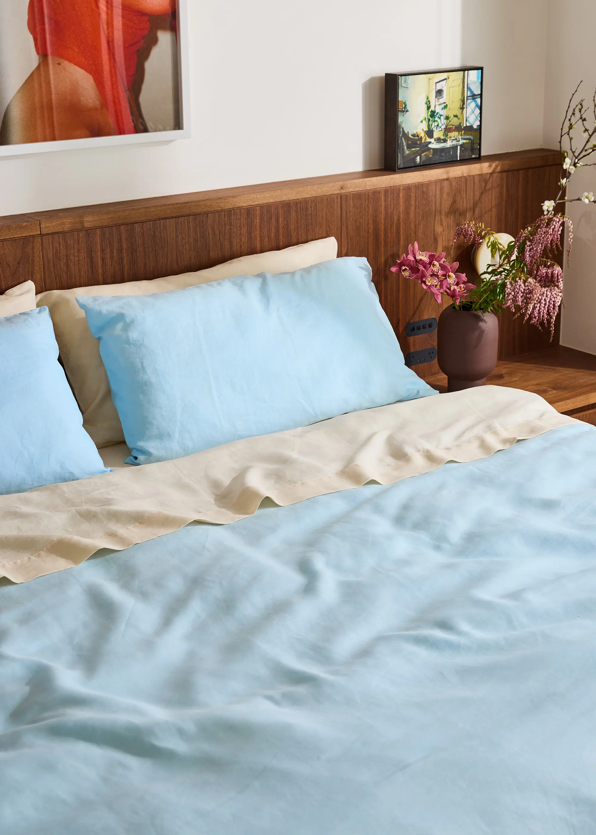 Recreate Bella's look with the Coast Duvet Cover, Coast Pillowcases, Crème Pillowcases, Crème Flat Sheet, Crème Fitted Sheet, Build Your Own Bundle and Save 20%.