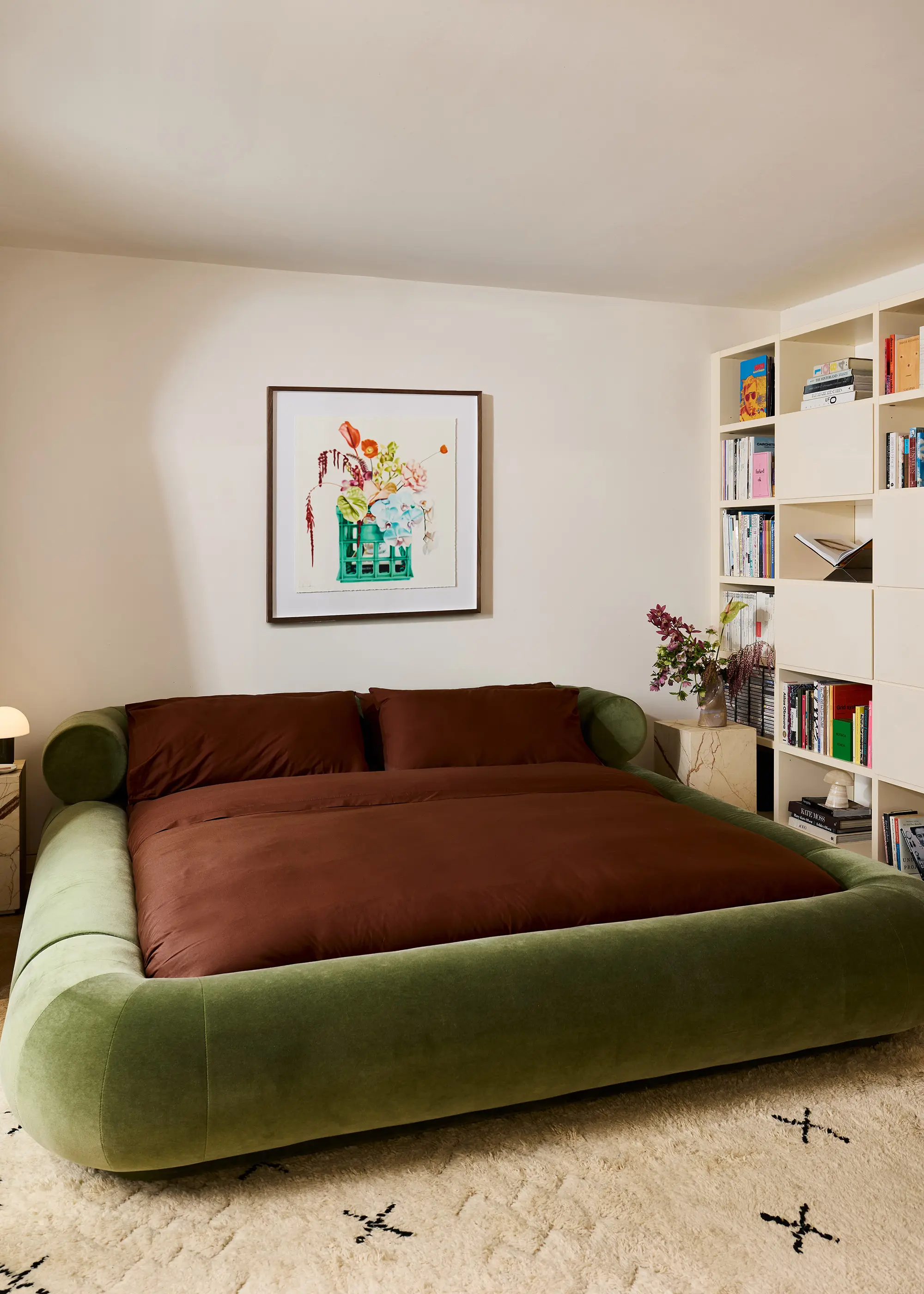 Anchoring the centre of the home is Bella’s favourite feature – a three-metre-long table, custom created by local maker Harley Hamilton. The room was so spacious (especially by comparison to her US apartments) that “filling it was kind of hard”. However, the task was aided by interior architect and friend Caitlin Nicolas, who advised on the layout and proportions.