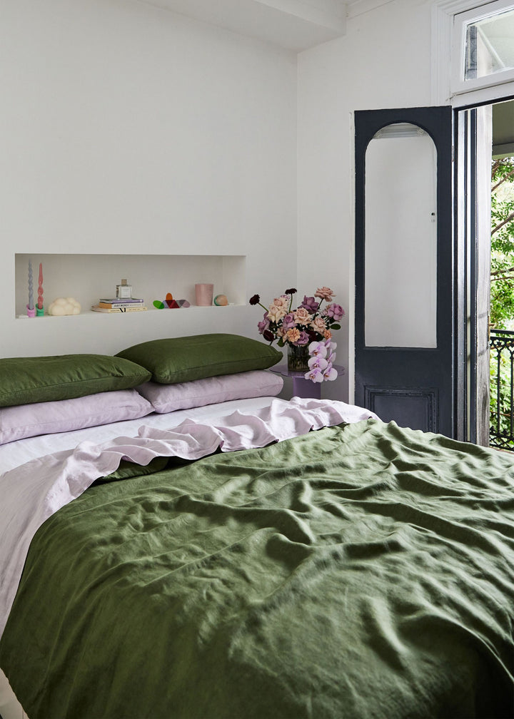 Need some inspiration for styling your room with this popular hue? We've rounded up nine of the most beautiful bedrooms featuring our Olive linens, which have all been uniquely styled with a variety of our other linen colours.