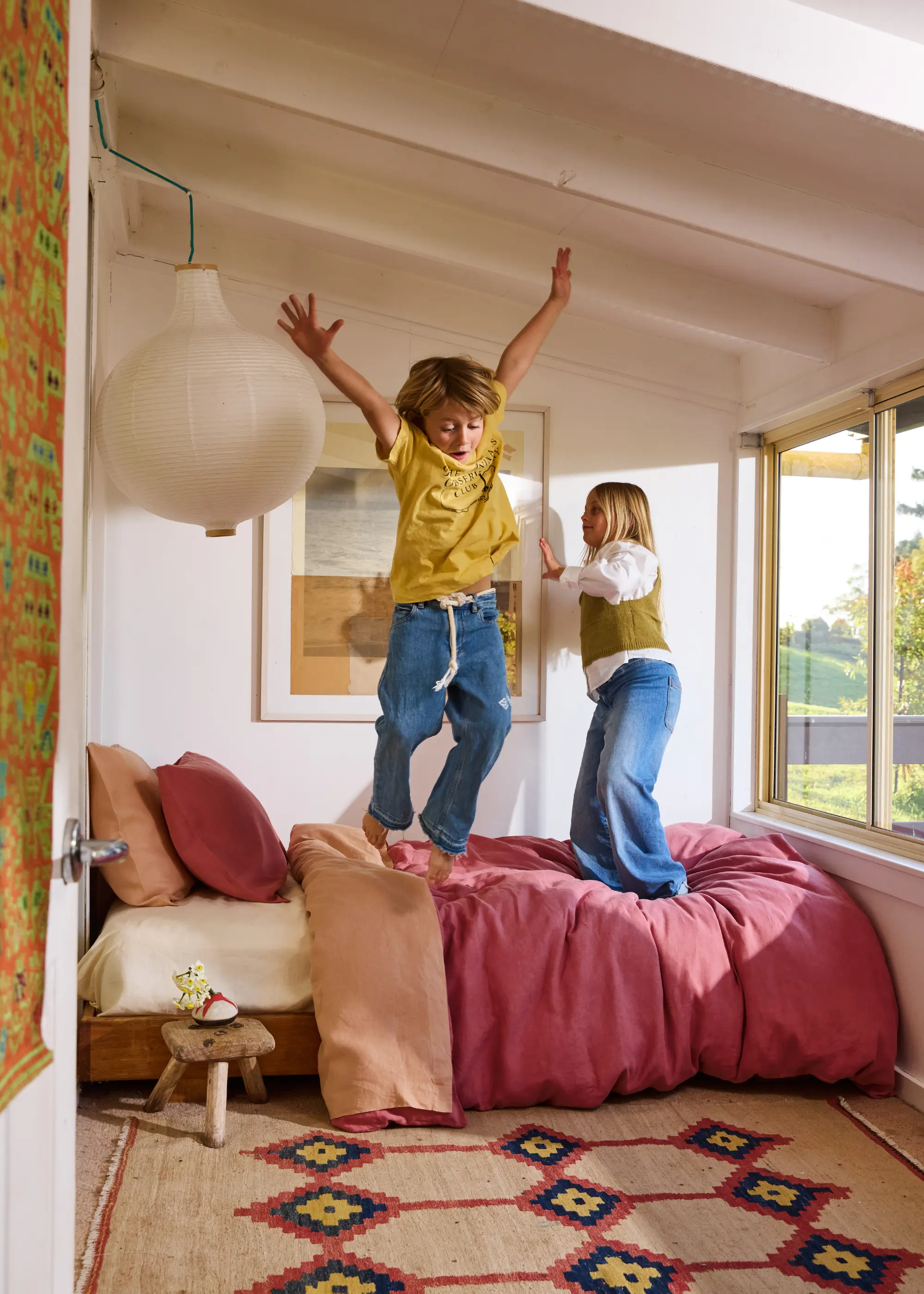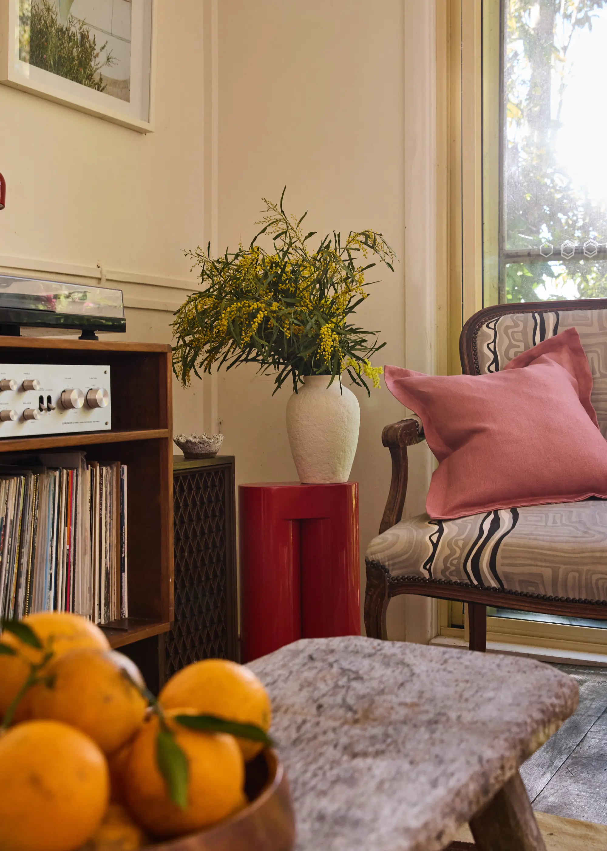 For Julia, what makes a house feel soulful are “the rituals and the experiences you have within it. All the stories.” She loves “bringing the outside in,” whether through “wild bunches of flowers” picked up at the Saturday markets or the haul of fruit and veg that fills the kitchen each week. “I feel like it just makes the house feel like it’s living and breathing with you,” she says. Even the smallest treasures – “a shell, a rock, a crystal” collected on outings – find their way inside. “It’s ever growing. It’s ever evolving.”