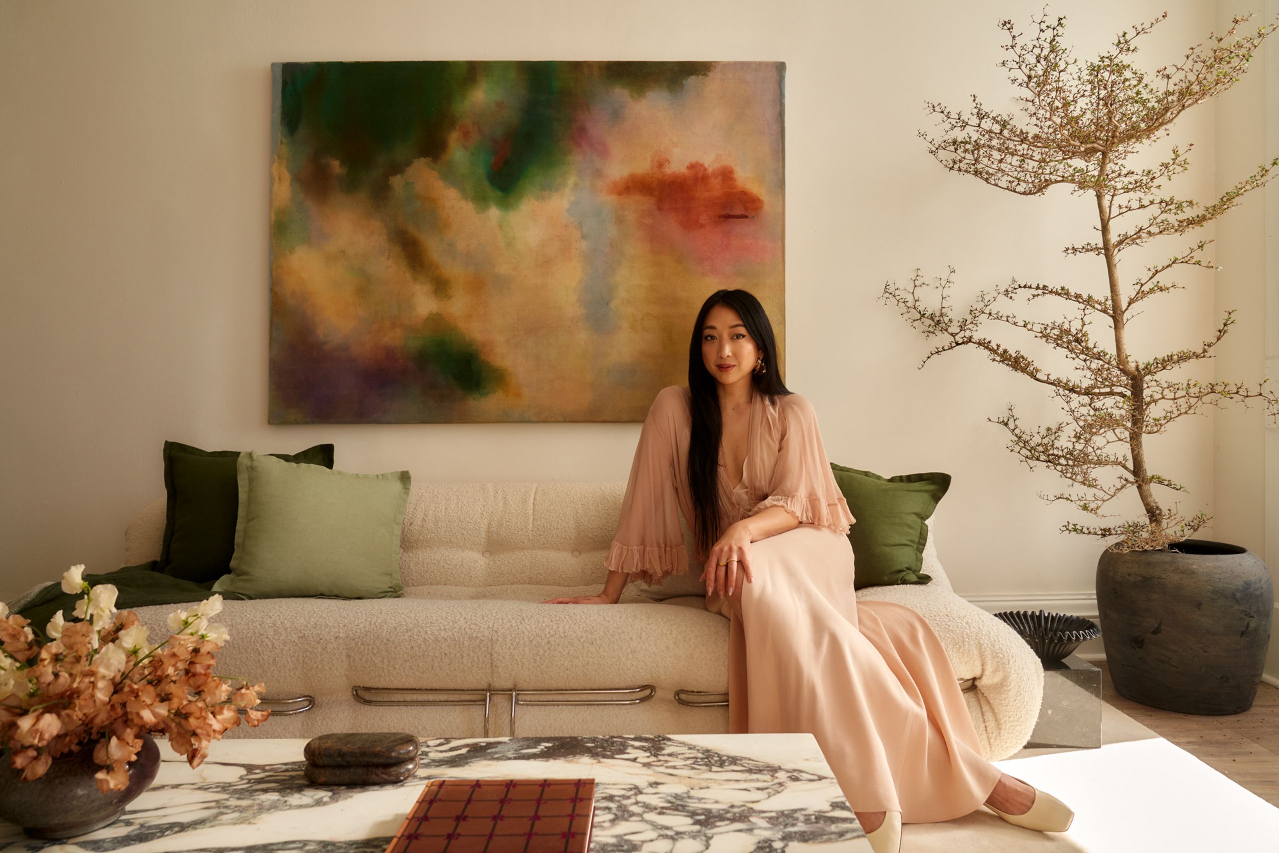 With the buzz of Brooklyn below her window, Serena Goh’s Bed-Stuy apartment is more than just an aesthete’s dream — it’s a haven where the outside world melts away. Bathed in earthy tones and filled with vintage treasures, her elegant townhouse reflects a deep appreciation for beauty and ritual. We’ve adored Serena’s ethereal, filmic content for a while — and as you might imagine, her home exudes that same cinematic quality.