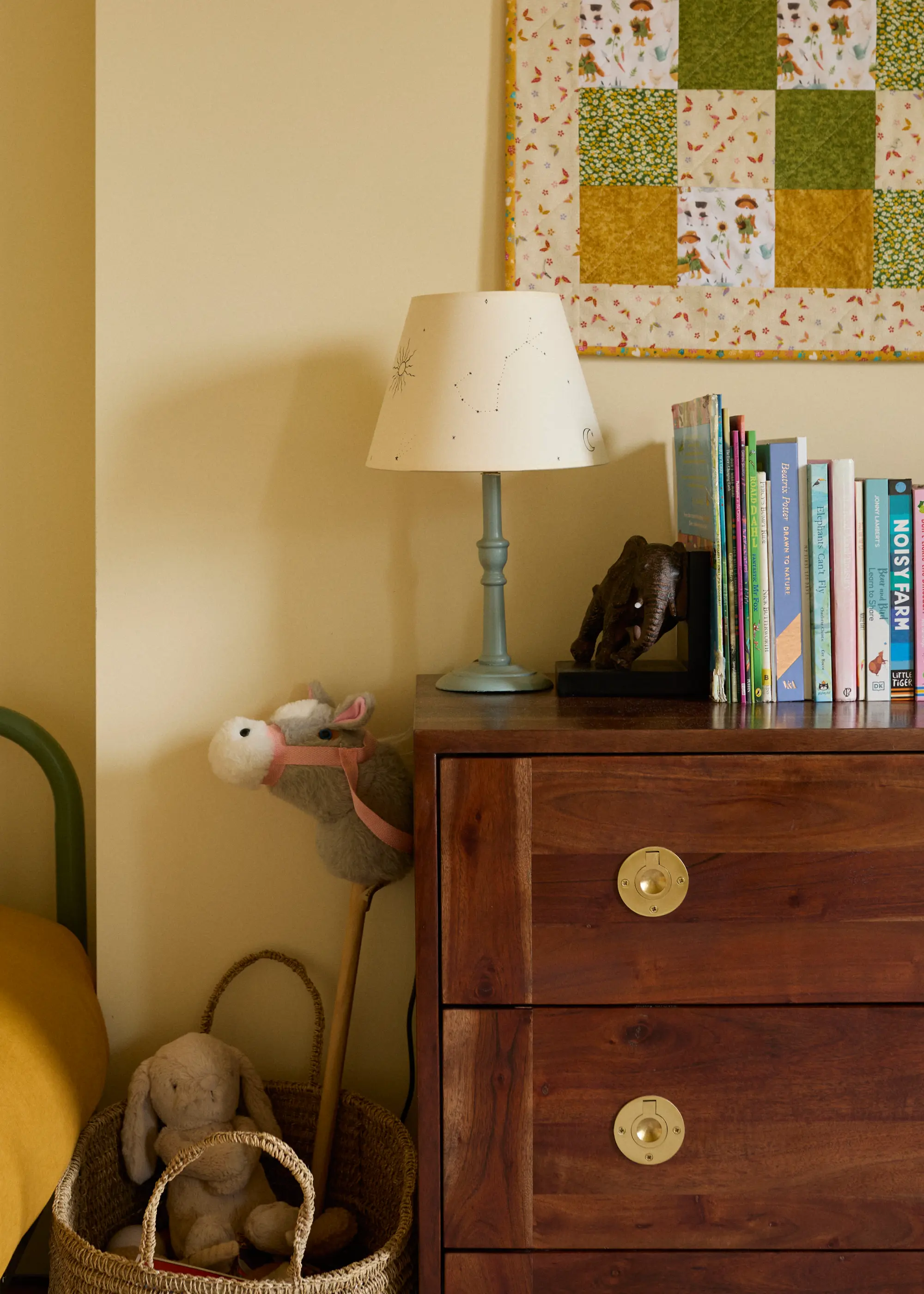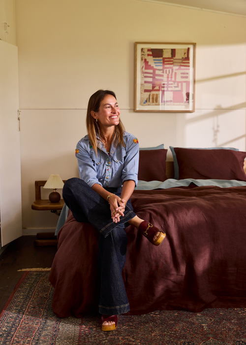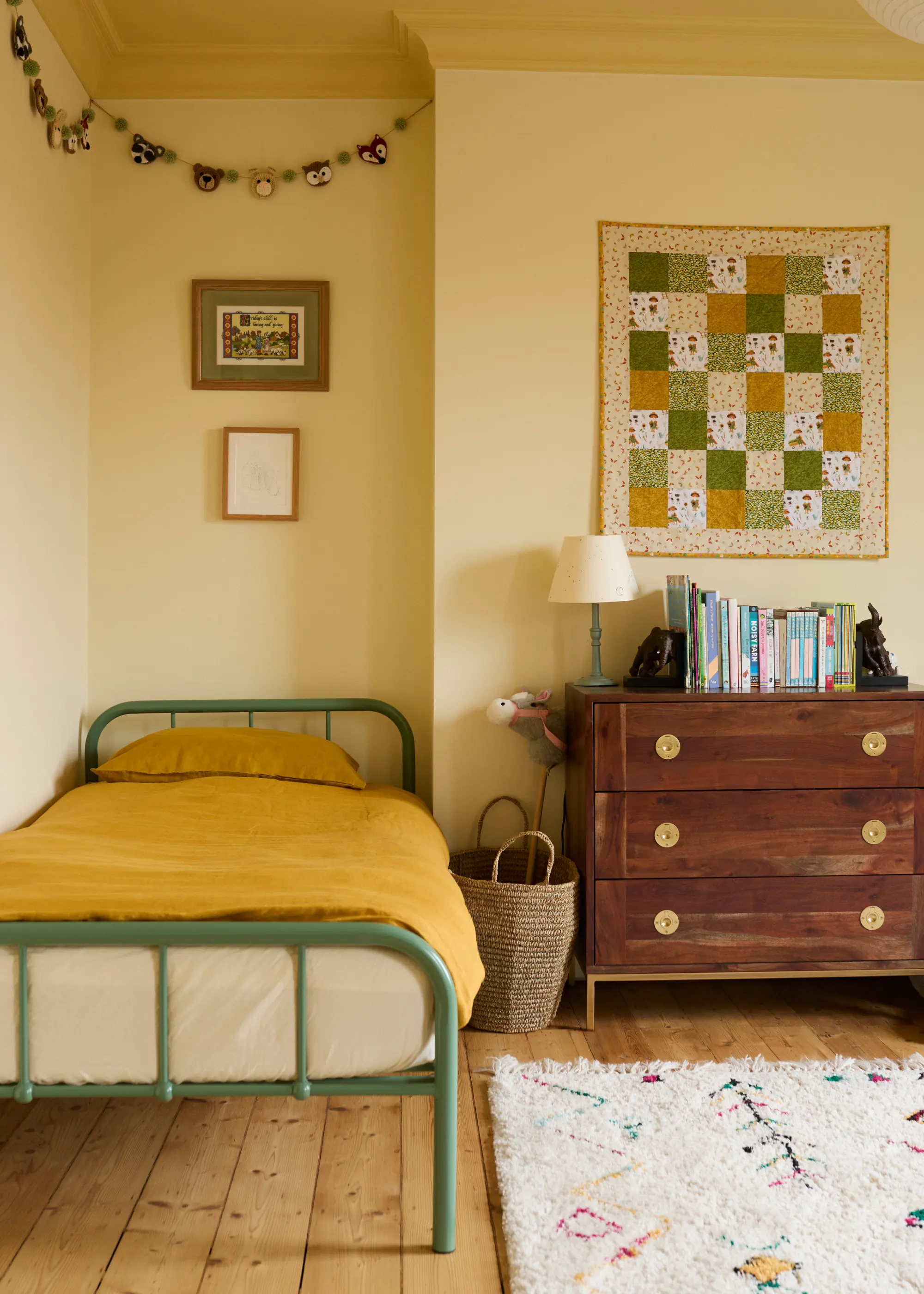 This fondness for the handmade and heartfelt extends to the homewares, too, with personal touches like cushions made by her mum, paintings by Dan’s grandmother, and ceramics by her dad displayed throughout the house. She puts this affection for objects made with love and intention down to “being a sentimental person.” “I want to be surrounded by things that are made by my family,” she says.