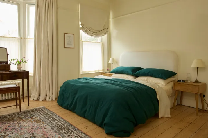 They were conscious of keeping the bedroom simple and stripped back. “We both agreed that we wanted it to feel like a sanctuary,” she says. The only major structural change was opening up the wall between the bedroom and bathroom to create an ensuite. “It’s a place where you can completely switch off – there’s nothing overstimulating.”