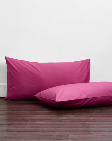 A high-impact hue that’s always in season? It has to be Berry. Awaken your senses with our 100% organic cotton percale bedding in this vibrant, sorbet-stained shade of pink, available as duvet covers, sheets and pillowcases.
