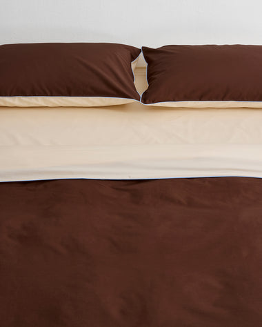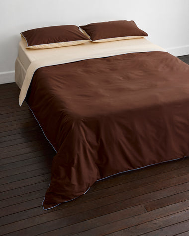 Espresso, Vanilla & Sky Piped 100% Organic Cotton Duvet Cover Piped Duvet Cover 100% Organic Cotton