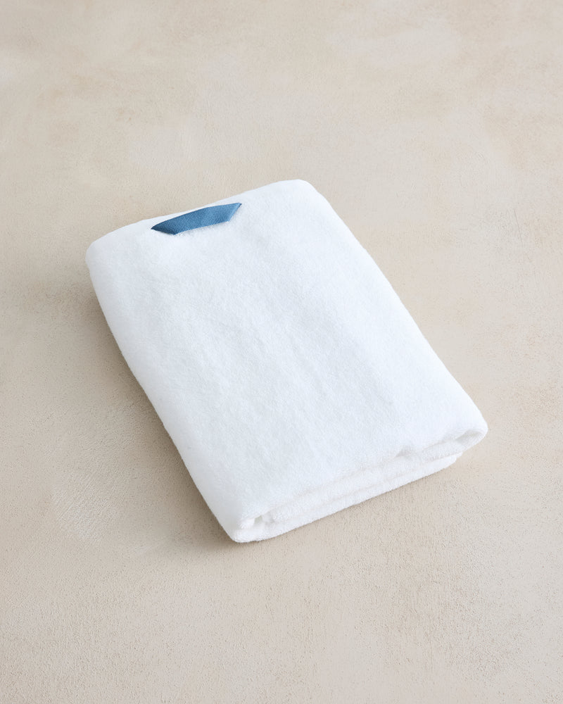 - Cotton Bath Towel packaged in a cotton storage sack.