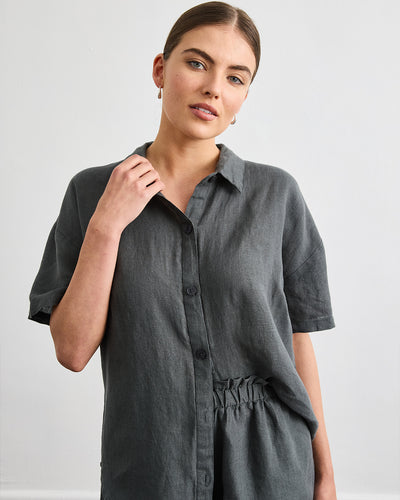 Marina Short Sleeve Shirt in Charcoal 100% French Flax Linen