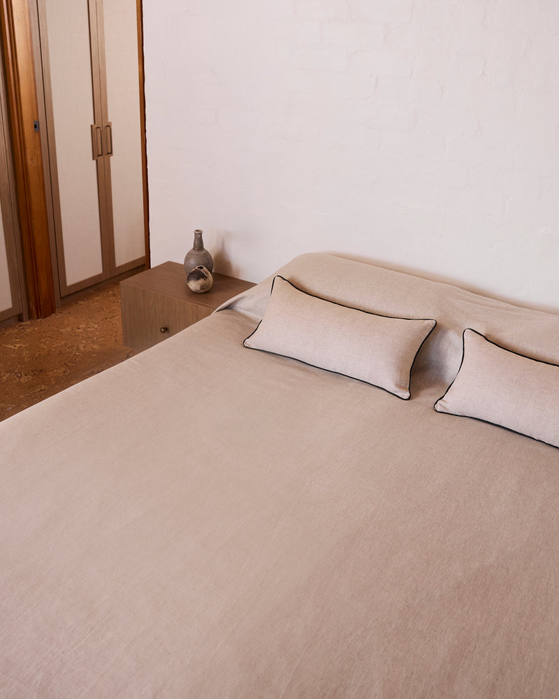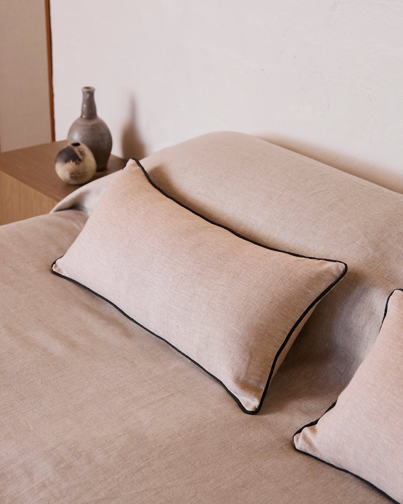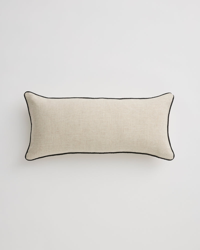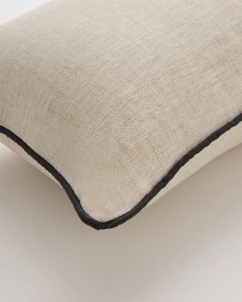 Oatmeal & Charcoal Piped Lumbar Cushion Cover 100% French Flax Linen