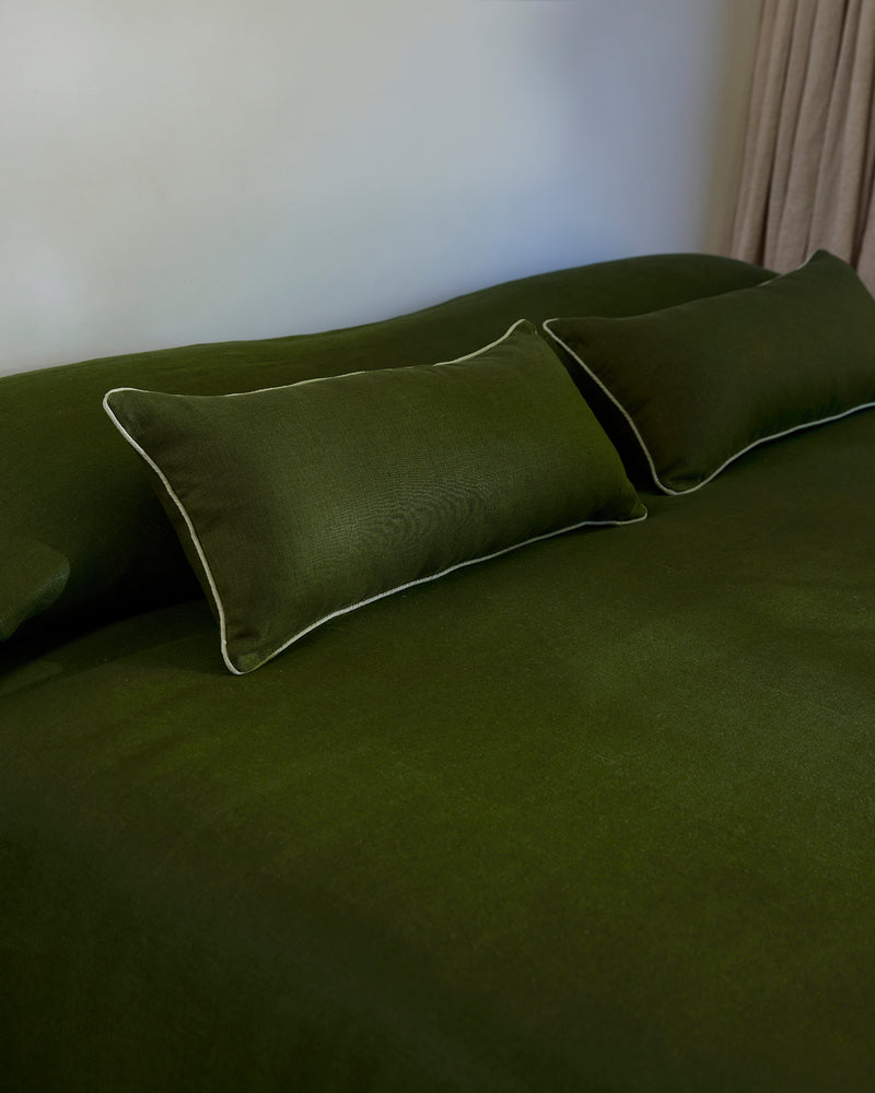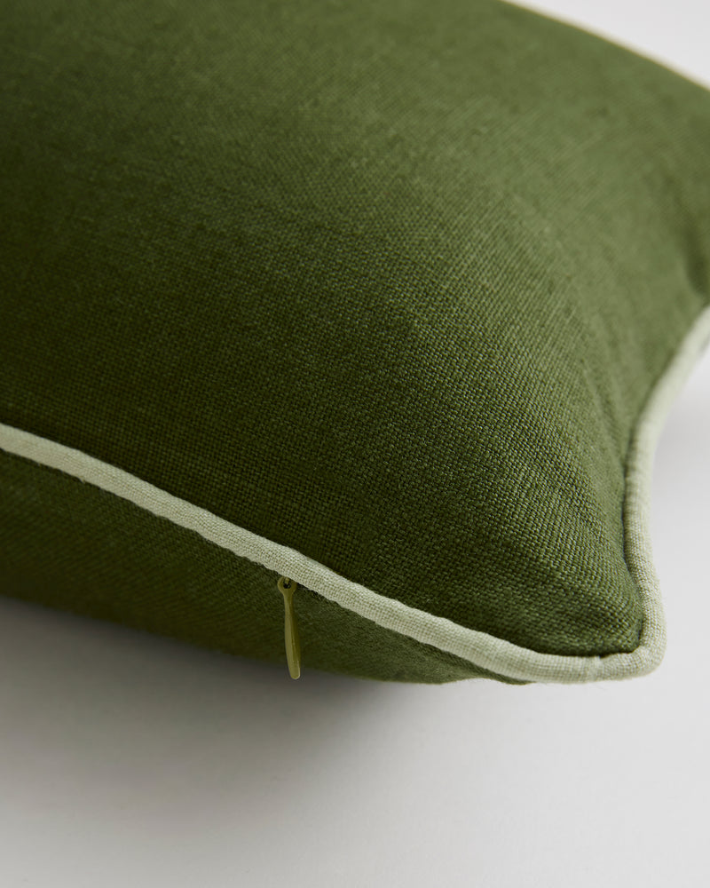 Olive & Sage Piped Lumbar Cushion Cover 100% French Flax Linen