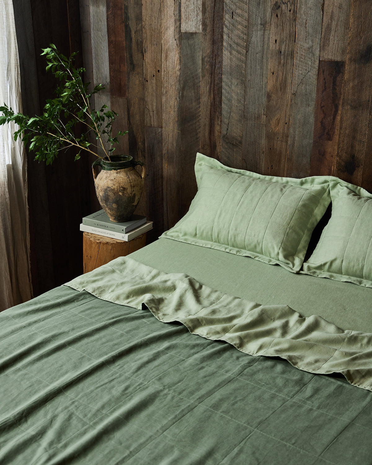 Sage Quilted Pillowcases (Set of Two) 100% French Flax Linen