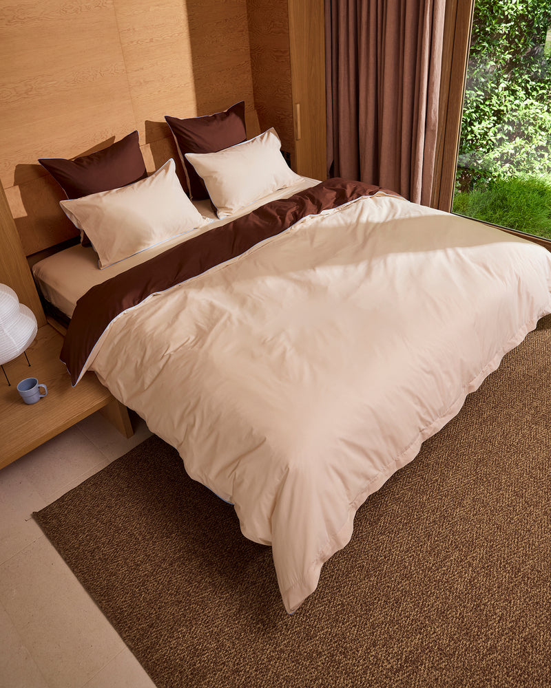 Espresso, Vanilla & Sky Piped Duvet Cover Set 100% Organic Cotton