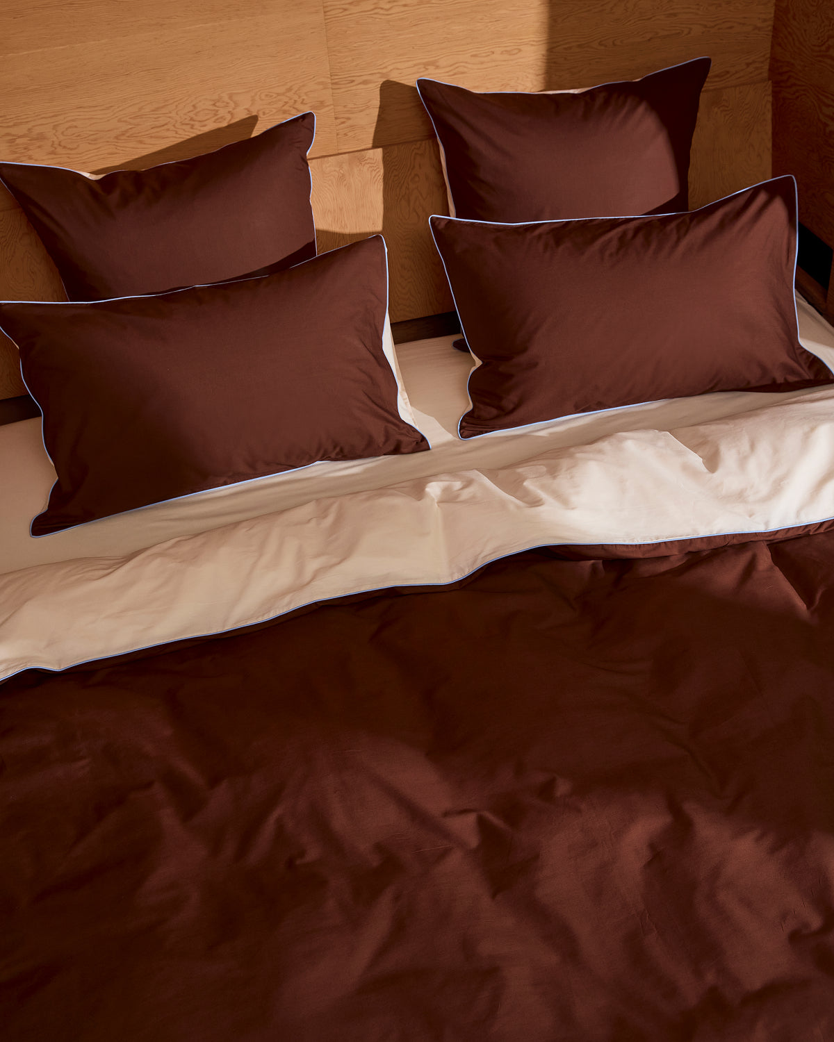 Espresso, Vanilla & Sky Piped European Pillowcases (Set of Two) 100% Organic Cotton