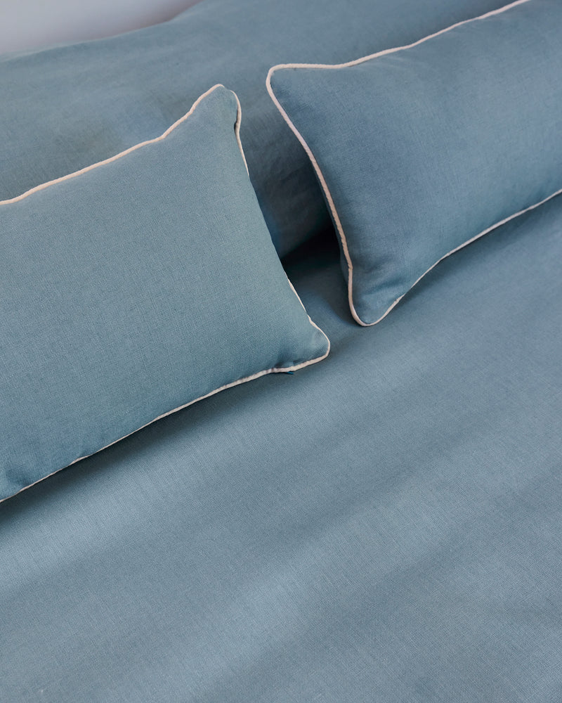 Lagoon & Crème Piped Lumbar Cushion Cover 100% French Flax Linen