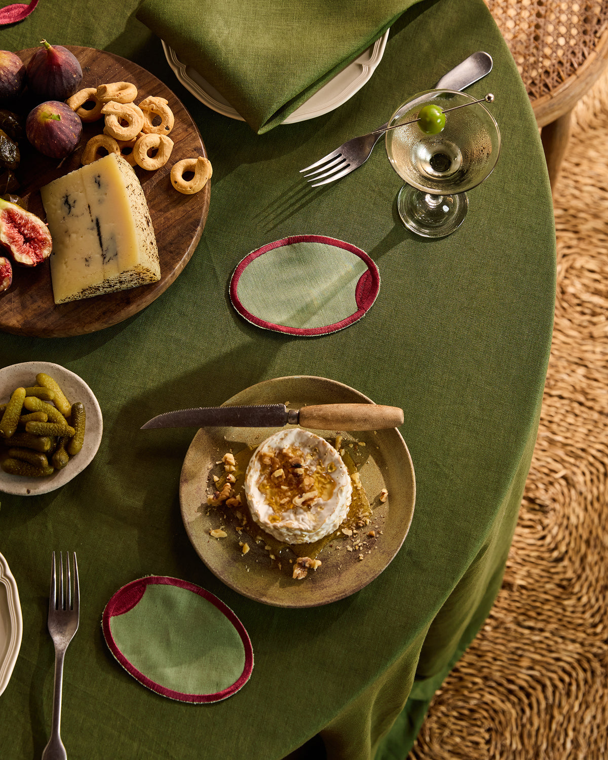 Les Fruits Olive Coasters (Set of Four) 100% French Flax Linen