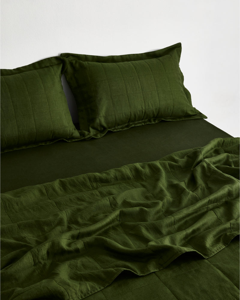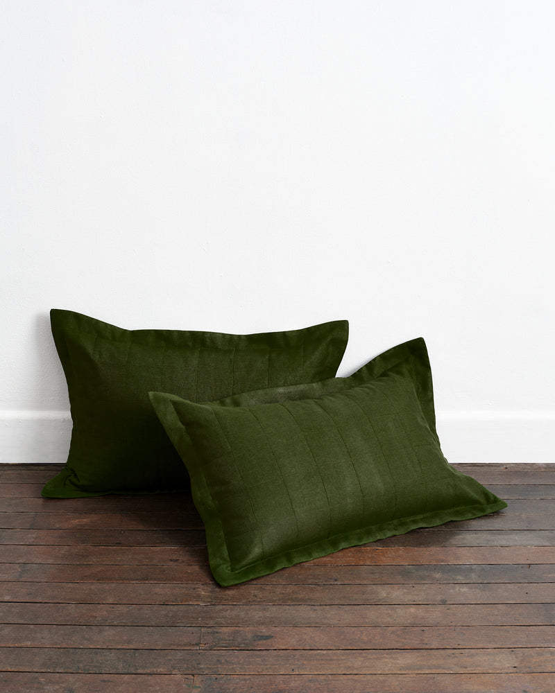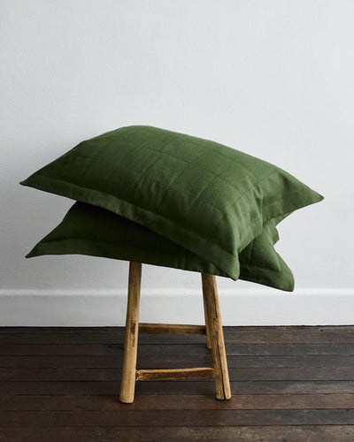 Olive Quilted Pillowcases (Set of Two) 100% French Flax Linen