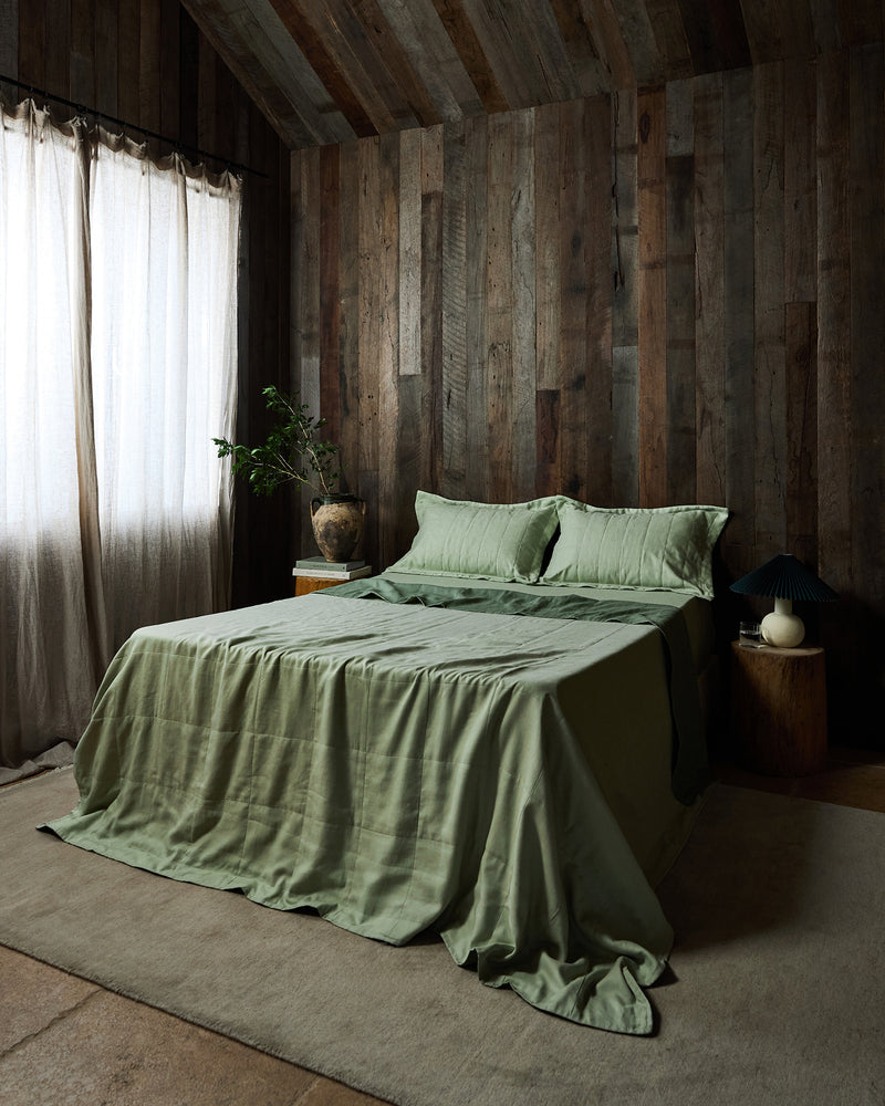 Sage & Pistachio Two-Tone Quilt 100% French Flax Linen
